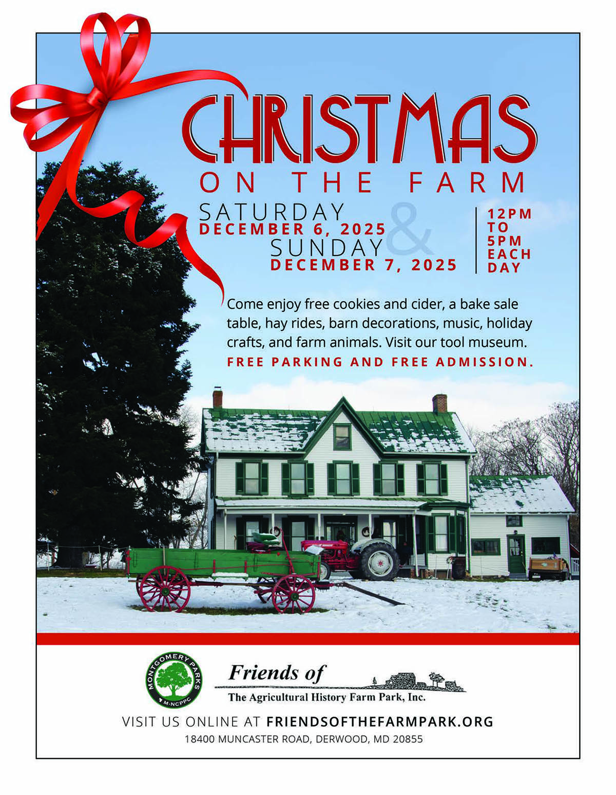 Come enjoy free cookies and cider, a bake sale table, hay rides, barn decorations, music, holiday crafts, and farm animals. Visit our tool museum. Free parking and free admission.